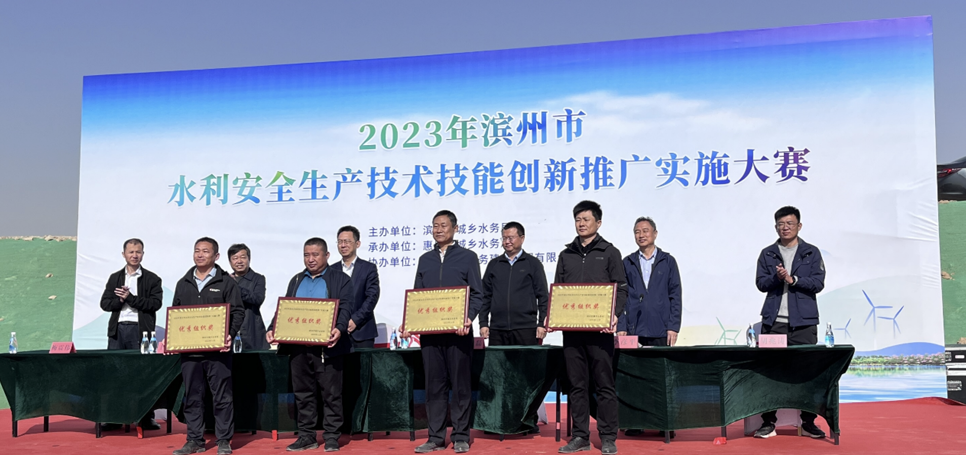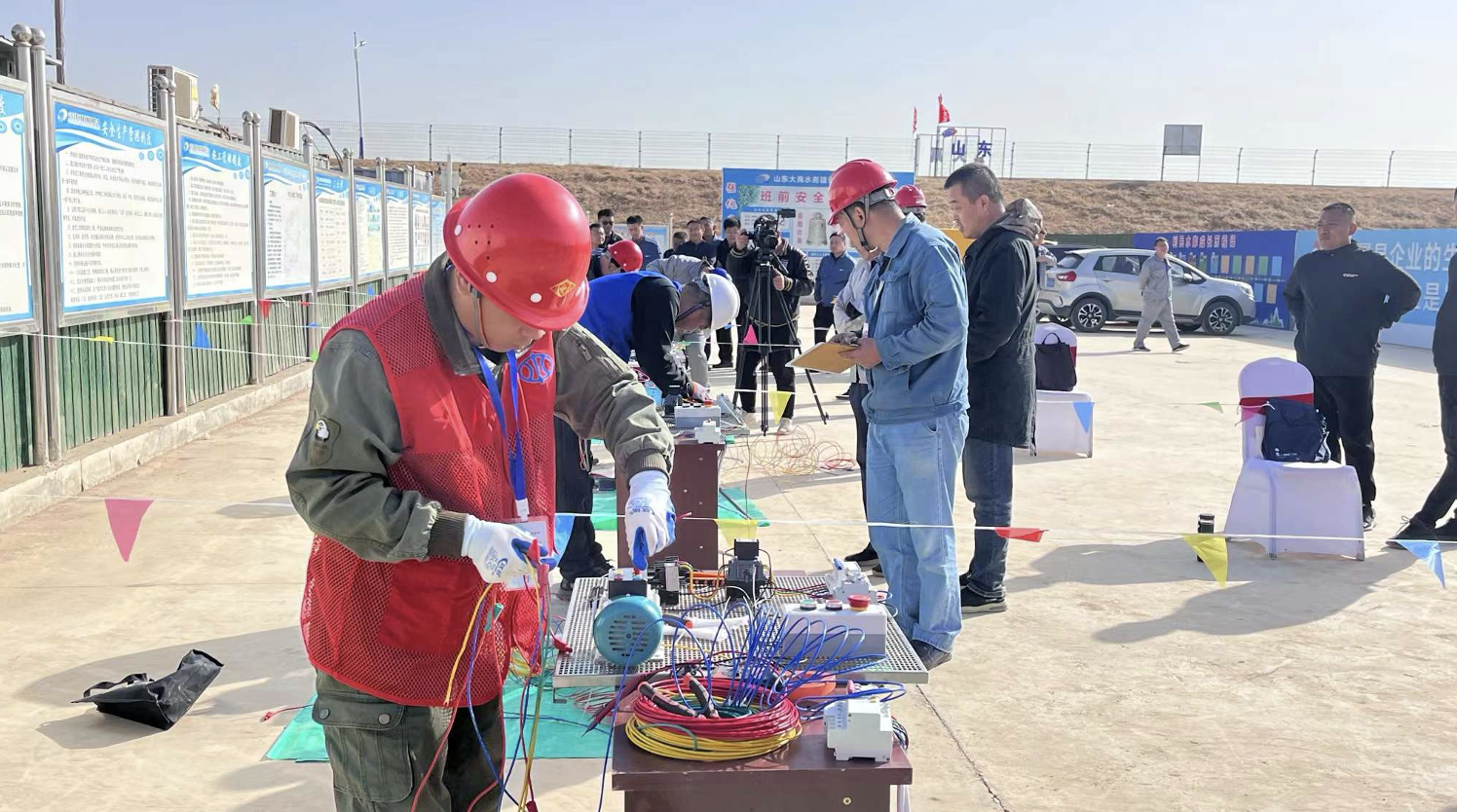 為深入貫徹落實(shí)習(xí)近平總書記“十六字”治水思路和關(guān)于治水重要講話指示批示精神,堅(jiān)持創(chuàng)新引領(lǐng),凝聚發(fā)展動(dòng)力,做到“以競(jìng)促學(xué)、以競(jìng)促效、以競(jìng)促優(yōu)”,進(jìn)一步完善水務(wù)行業(yè)安全生產(chǎn)治理體系、提升安全生產(chǎn)治理能力,11月4日,由濱州市城鄉(xiāng)水務(wù)局舉辦、山東大禹水務(wù)建設(shè)集團(tuán)有限公司協(xié)辦的“2023年濱州市水利安全生產(chǎn)技術(shù)技能創(chuàng)新推廣實(shí)施大賽”在集團(tuán)公司承建的利民水庫(kù)施工現(xiàn)場(chǎng)舉行。濱州市城鄉(xiāng)水務(wù)局黨組成員、副局長(zhǎng)張統(tǒng)亮,惠民縣人民政府副縣長(zhǎng)周學(xué)磊,惠民縣城鄉(xiāng)水務(wù)局黨委書記、局長(zhǎng)王金周,濱州市城鄉(xiāng)水務(wù)局四級(jí)調(diào)研員李彥平,濱州市城鄉(xiāng)水務(wù)發(fā)展服務(wù)中心建設(shè)科科長(zhǎng)梅震偉出席活動(dòng)。