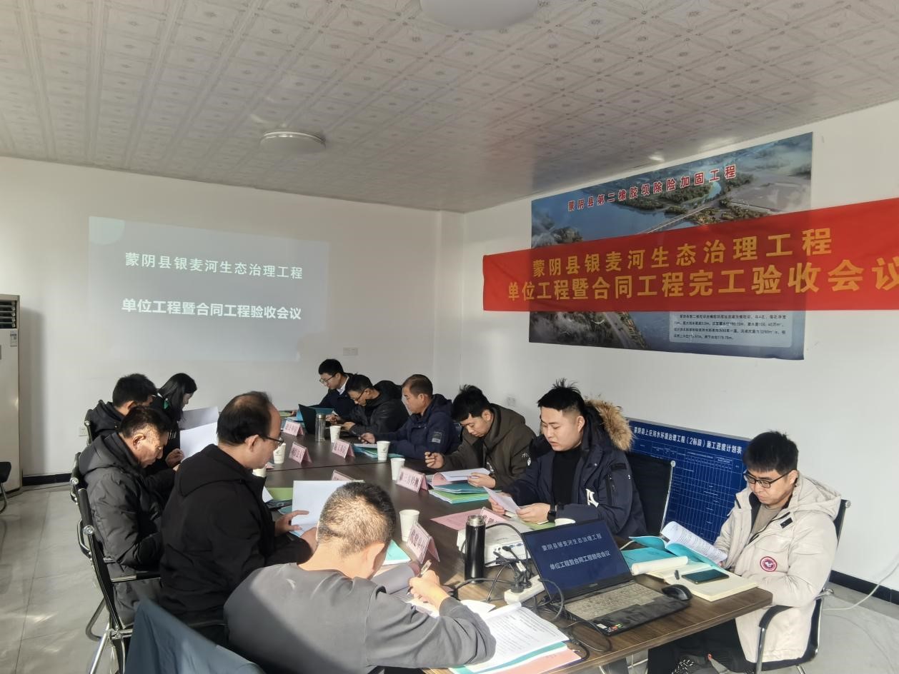 1月19日,蒙陰城發生態資源開發運營有限公司主持召開蒙陰縣東汶河水系治理及飲用水水源地保護工程-銀麥河生態治理工程合同工程完工驗收會議。蒙陰縣水利局、臨沂市水利水電工程建設監理中心、山東省水利勘測設計院有限公司、山東誠達工程咨詢有限公司、山東大禹水務建設集團有限公司、山東省水利工程試驗中心有限公司等單位的代表參加會議,并組成銀麥河生態治理工程合同工程驗收工作組。蒙陰縣水利局水利基本建設工程質量監督站派員列席會議。