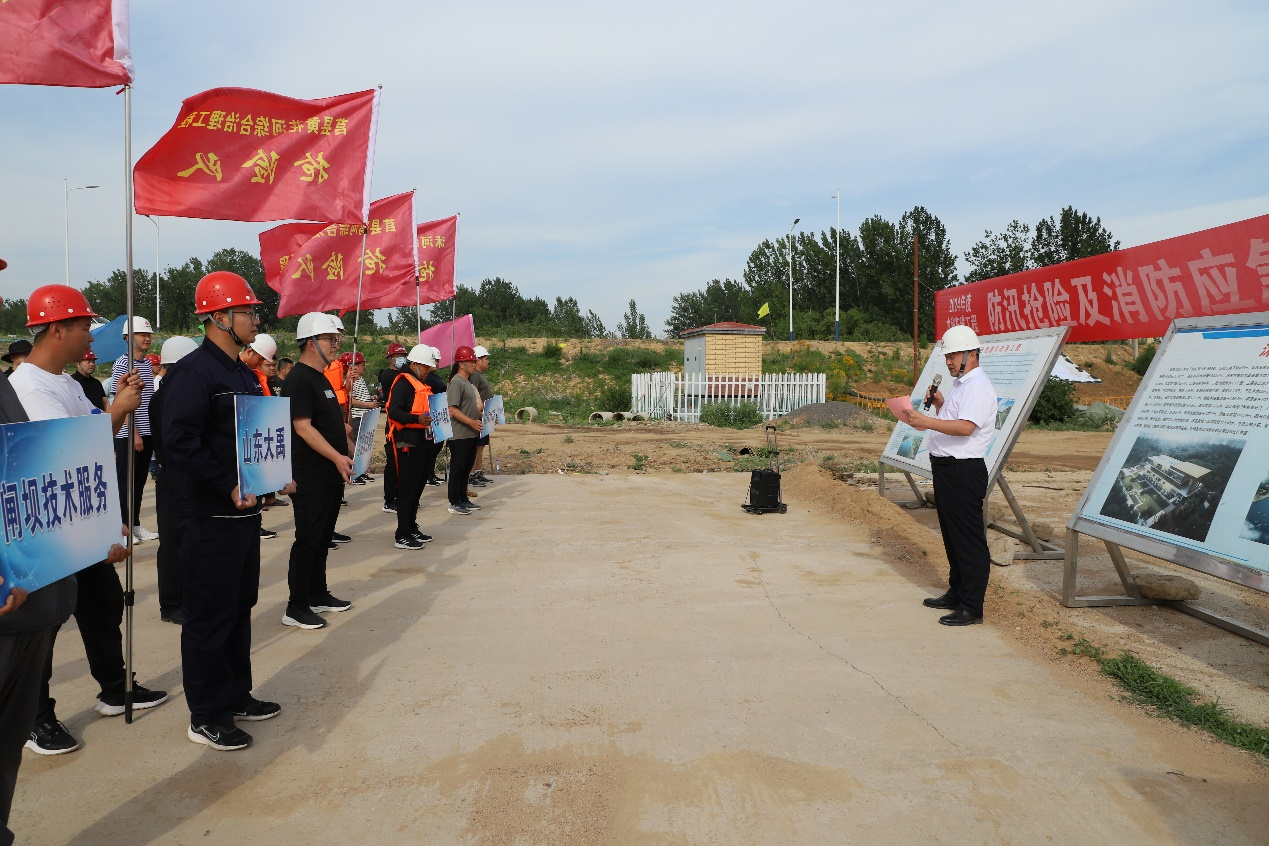 為深入推動水利系統安全生產管理,提高處置突發事件能力,培養參建單位自救互救能力,檢驗防汛預案的有效性,5月29日,由莒縣水利局指導,莒縣城投集團主辦,山東大禹水務建設集團有限公司、莒縣興源水務有限公司具體承辦的水利建設工程防汛搶險及消防應急救援聯合演練,在沭河引調水攔蓄工程項目施工現場舉行。