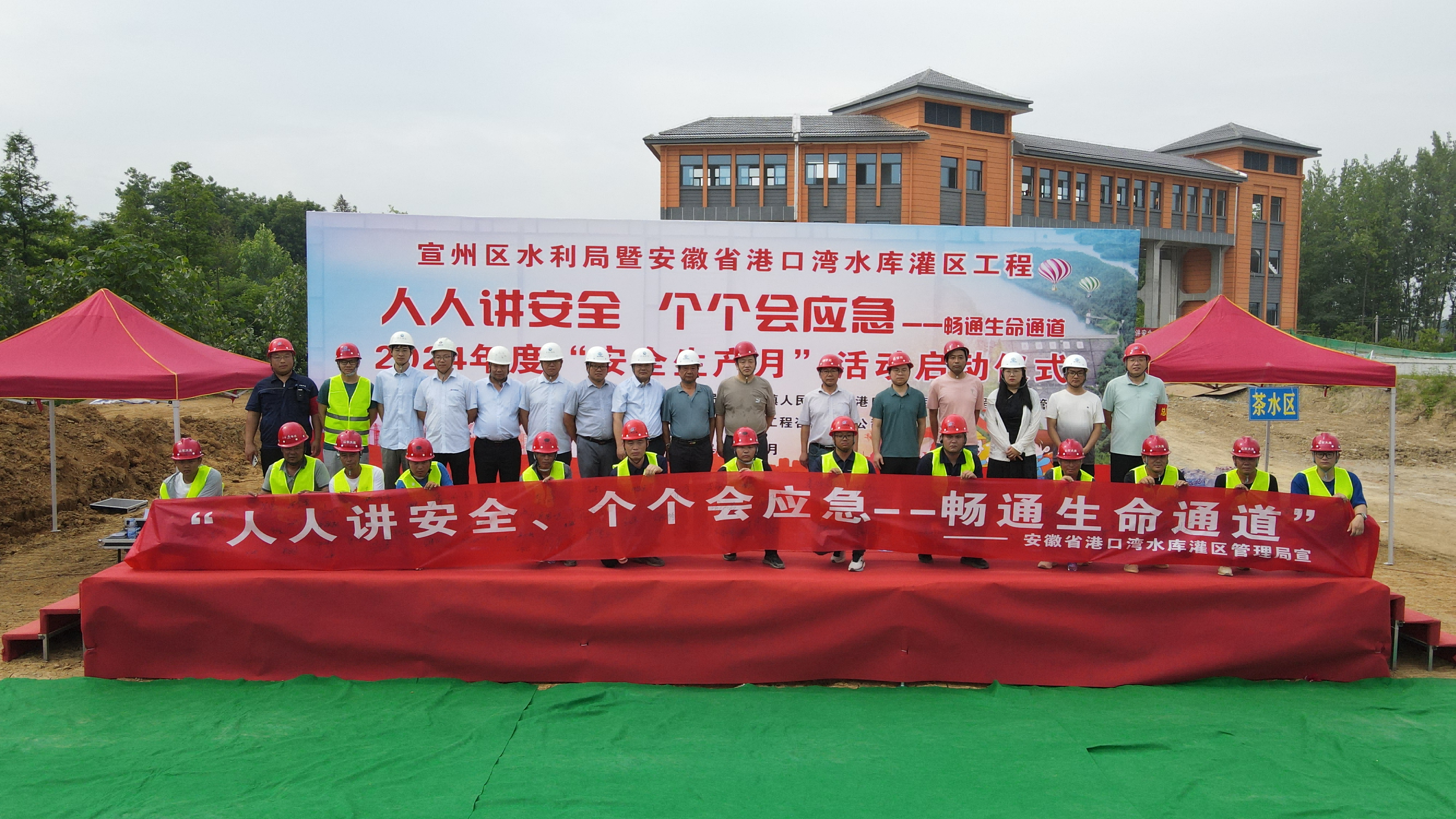 6月14日,安徽省港口灣水庫灌區(qū)工程2024年度安全生產(chǎn)月活動啟動儀式暨綜合應(yīng)急演練在集團(tuán)公司承建的施工14標(biāo)佟東佟李分水閘舉行。宣州區(qū)水利局局長張云、中水淮河安徽恒信工程咨詢有限公司總監(jiān)汪亞超、集團(tuán)公司副總經(jīng)理兼安全總監(jiān)馬永收出席活動并致辭,宣州區(qū)人民政府副區(qū)長黃彬宣布安全生產(chǎn)月活動正式啟動。活動伊始,全體人員在“人人講安全,個個會應(yīng)急——暢通生命通道”條幅上簽名并合影。活動認(rèn)真貫徹國家安全生產(chǎn)方針,深入踐行“人人講安全,個個會應(yīng)急——暢通生命通道”主題要求,真正把安全責(zé)任扛在肩上、抓在手中、落在實處。