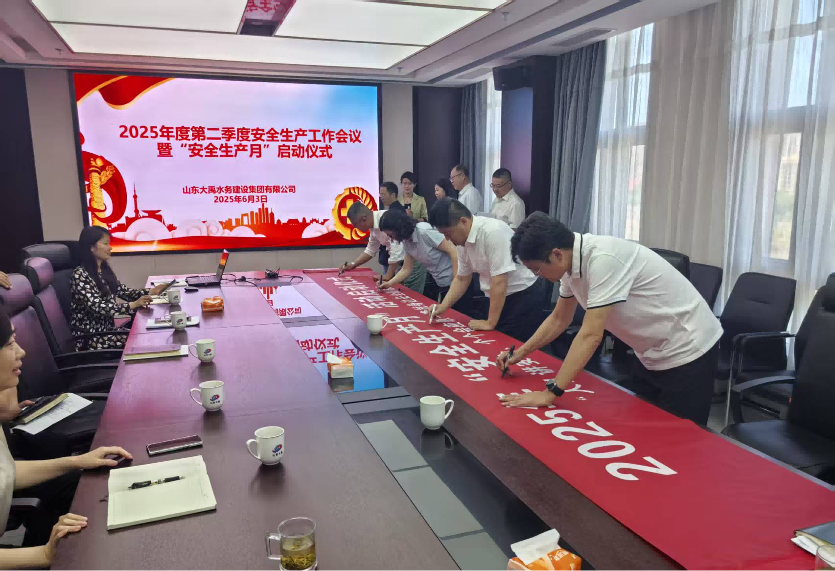 會議研究第二季度安全生產工作情況,宣貫集團公司“安全生產月”活動實施方案,部署下一階段的安全生產工作,觀看安全月主題宣傳片,并進行“安全生產月”啟動儀式簽名活動。
