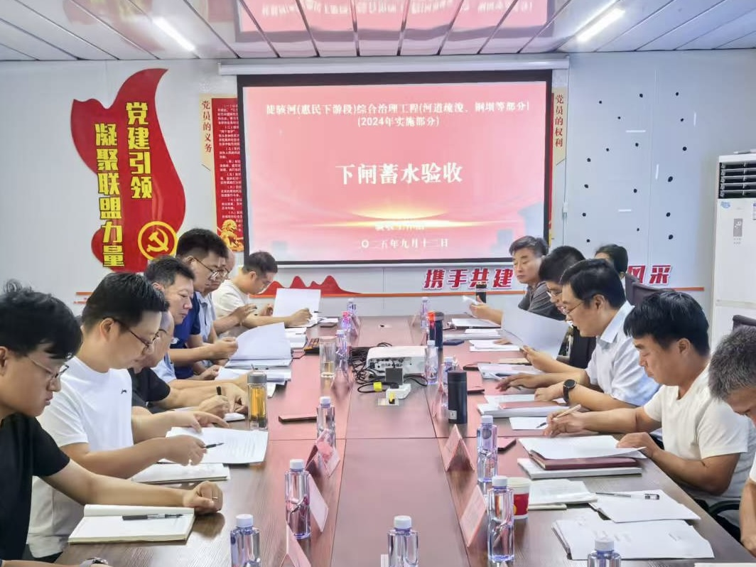 9月12日,惠民縣城鄉水務局按照《水利水電建設工程驗收規程》(SL/T 223—2025)主持徒駭河(惠民下游段)綜合治理工程(河道疏浚、鋼壩等部分)(2024年實施部分)下閘蓄水驗收會議。驗收委員會由惠民縣城鄉水務局、惠民縣水利工程建設質量與安全監督站等單位的代表和特邀專家組成,山東惠民農業投資發展集團有限公司(項目法人)、惠民縣河道管理所(運行管理單位)、山東龍躍興設計集團有限公司(勘察設計單位)、山東省科源工程建設監理中心(代建單位)、山東金至工程咨詢有限公司(監理單位)、濰坊正信工程質量檢測有限公司(質量檢測單位)、山東大禹水務建設集團有限公司(施工單位)等單位的代表參加會議。