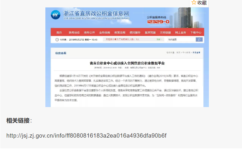 4月17日,浙江省直房改公積金信息網(wǎng)發(fā)布《省直公積金中心成功接入全國(guó)住房公積金數(shù)據(jù)平臺(tái)》的通知。