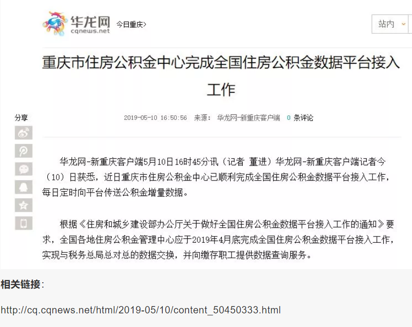 4月26日,重慶市住房公積金中心順利完成全國(guó)住房公積金數(shù)據(jù)平臺(tái)接入工作,向全國(guó)住房公積金數(shù)據(jù)平臺(tái)傳送了全部公積金存量數(shù)據(jù)(約3.255億條)。