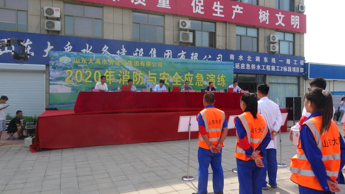 為預防和控制安全事故的發生,切實做好施工項目的現場安全工作,提高員工應急能力,2020年7月28日,集團公司在南水北調北延應急供水工程項目部組織開展了一場消防與安全應急演練活動,近40名公司總部人員、南水北調北延應急供水工程項目部、南水北調聊城安全防護更新改造工程項目部、南水北調平陰安全防護更新改造工程項目部、南水北調夏津路面硬化工程項目部人員參與。