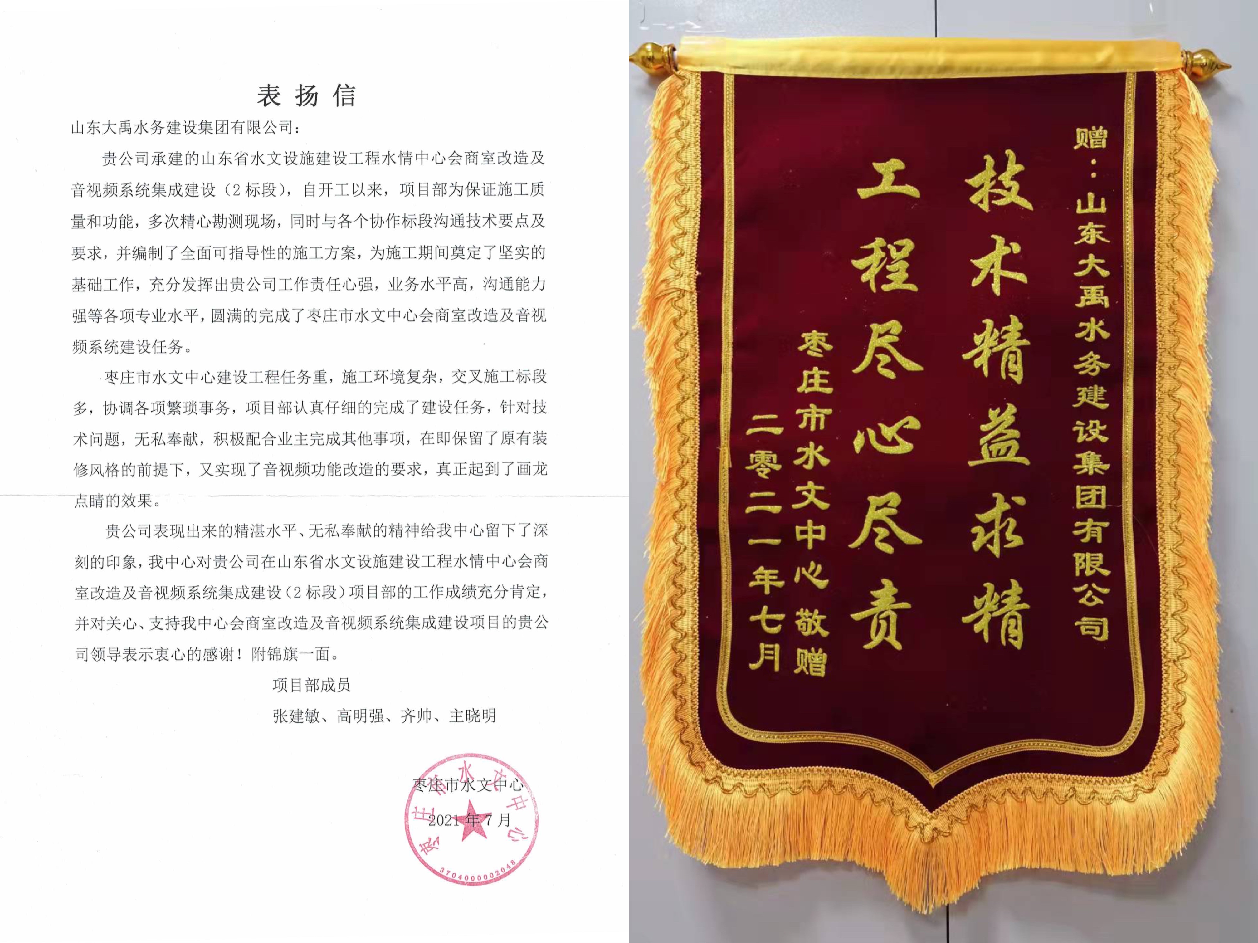 山東省水文設施建設工程水情中心會商室改造及音視頻系統集成建設(2標段)開工以來,在建設單位的精心指導和集團公司的大力支持下,項目管理人員精心謀劃、合理安排,工程圓滿結束,得到棗莊市水文中心的一致認可。