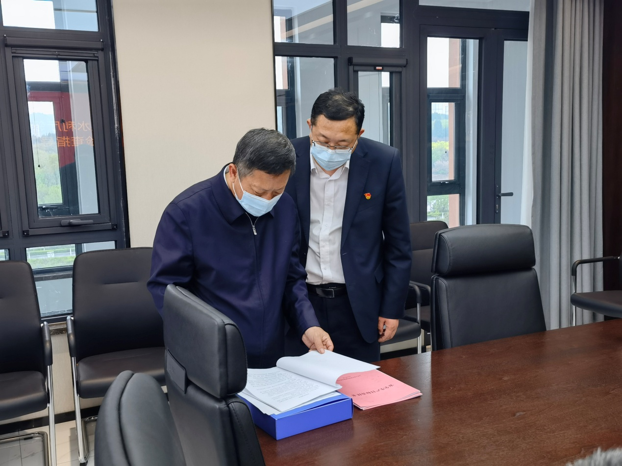 4月12日,省水利廳一級巡視員王祖利,監(jiān)督處處長郭忠,監(jiān)督處副處長劉雅芬,安全專家韓仲凱、張釗蒞臨集團公司調(diào)研安全生產(chǎn)工作。山東水設(shè)黨委委員、副總經(jīng)理、安全總監(jiān)曹先玉,安委會辦公室主任吳敬峰,集團公司董事長張海濤,總經(jīng)理張玉源等陪同調(diào)研。